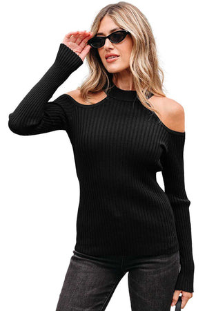 Black Cold Shoulder Choker Neck Sweater