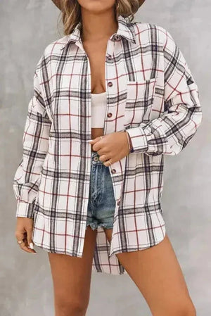 Plaid Button Front Western Style Shacket