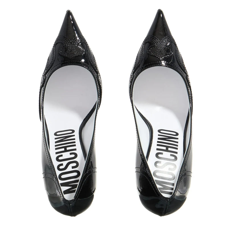 Moschino Scarpa Donna Nero High Heels £585.10 £117 -80% or 12 instalments of £0 30-day best price*: £0 Choose your shoe size 5 (UK) 5.5 (UK) Add to cart Only 1 item(s) left in stock. Order now and secure your desired product. Estimated delivery time: Friday, 13 Feb 2026 - Tuesday, 17 Feb 2026 (more details) Our best delivery service for you Standard Shipping Our standard shipping is free for orders with a minimum order total of £200; otherwise we charge a shipping and service fee of £10.Select “Standard Shipping” for free delivery within 4-6 working days. Close Product features The high heels Scarpa Donna Nero by Moschino perfectly complete every playful look. Outer material consisting of black leather with patent finish and decorative stitching Comfortable inner material consisting of leather Classic look due to leather sole Flat, classic heel of approx. 10.5 cm With an elegant, pointed toe Easy to put on without closure Notes: Please waterproof using a suitable care product before wearing it for the first time and store in a dustbag or a shoe box Manufactured in Italy Material: Outer material: LeatherLining: LeatherCover sole: LeatherOuter sole: Leather From suede to smooth leather – find the right care tips here.
