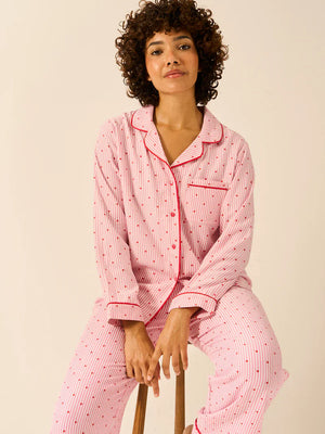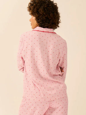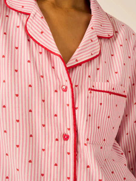 Stripe & Stare Soft Brushed Woven Pyjama Top-Heart Print