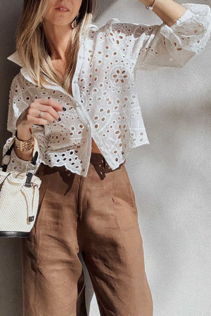 White Cutwork Embroidered Crop Top