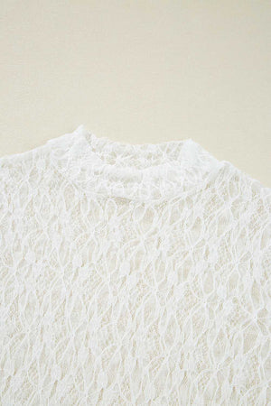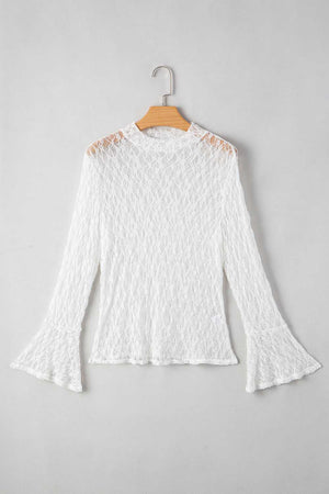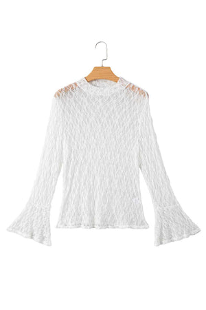 White Sheer Lace Bell Sleeve Blouse